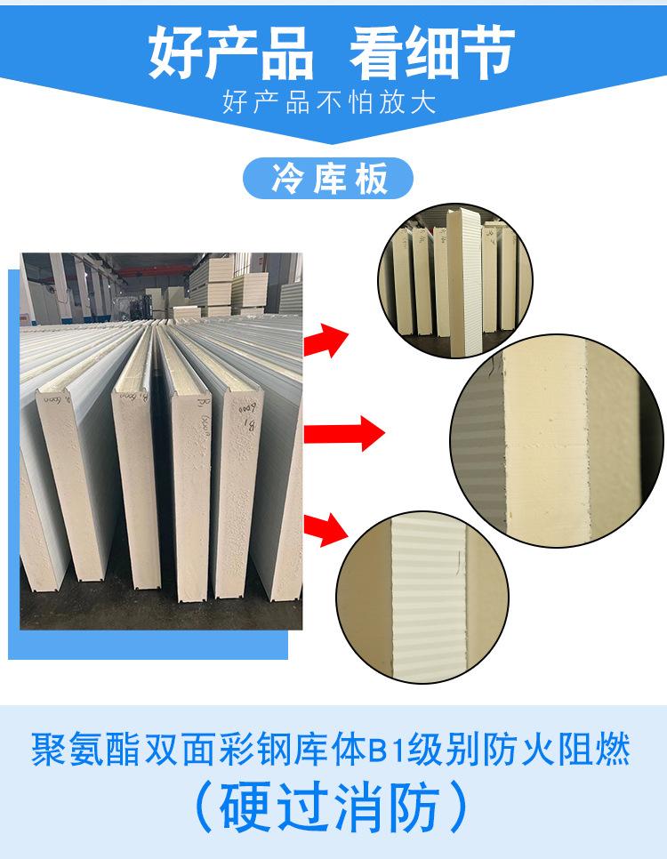 3、庫(kù)板厚一般采用150mm、200mm,板內(nèi)填充聚氨脂保溫材料,雙面為涂塑彩鋼板或不銹鋼板,彩鋼板面加工成隱形槽,其重量輕,強(qiáng)度高、隔熱性能好, 耐腐蝕、抗老化,該庫(kù)板拼裝簡(jiǎn)便快捷,是冷庫(kù)保溫庫(kù)體選擇的最佳材料之一。