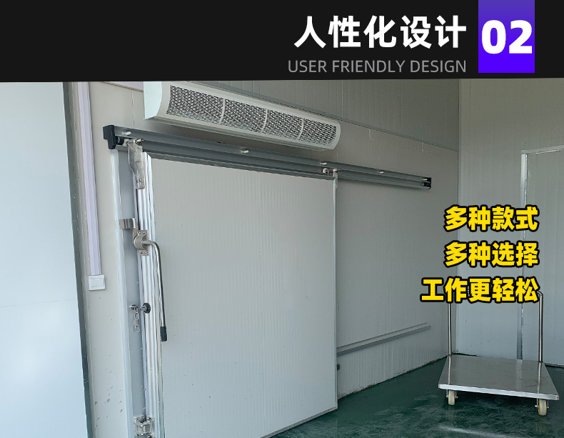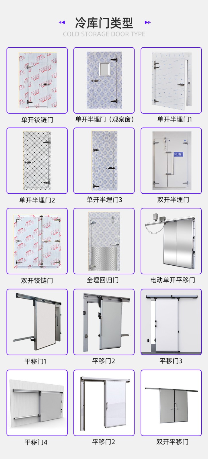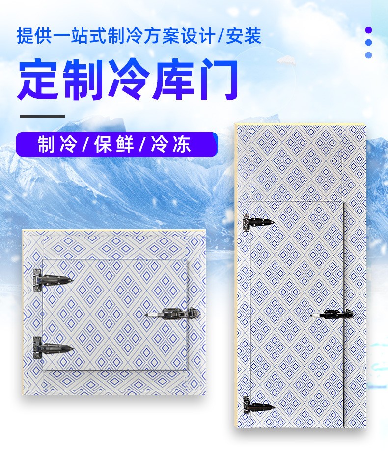 裝配式中小型冷庫的庫門是冷庫作業(yè)人員和貨物的出入口,它實質上是一個活動的保溫圍護結構,要求其有保溫性能好、堅固耐用、密封性能好、啟閉靈活等特點。