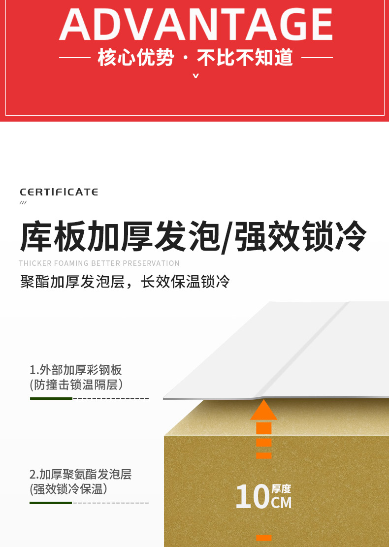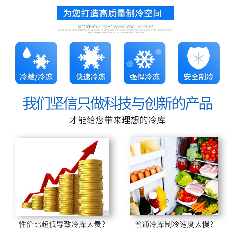 冰菱公司的組合拼裝式可移動的室內(nèi)、室外、大、中、小型冷庫,積累多年的制造和安裝施工經(jīng)驗,運用最為先進的制冷技術和保溫板制造技術,其重量輕,強度高、隔熱性能好, 耐腐蝕、抗老化。