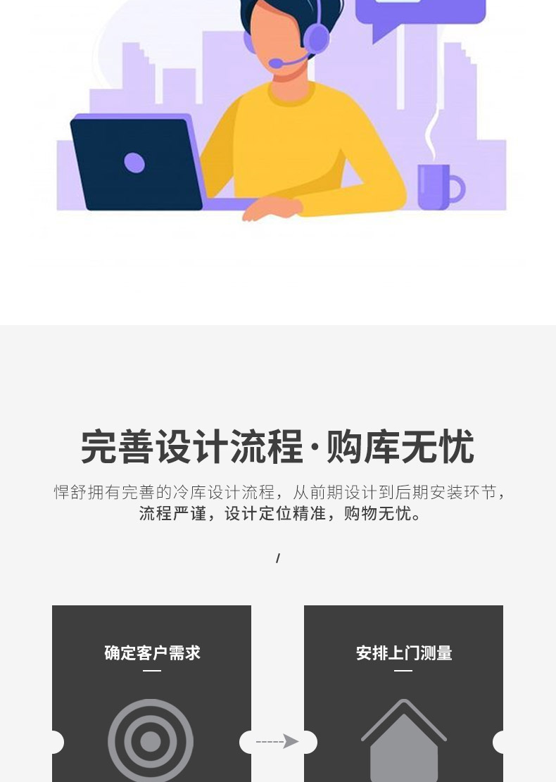 冷庫的外形尺寸、庫溫、機組的安放位置、庫門的開啟、庫內(nèi)的布置等等,所有這些都可根據(jù)用戶的具體要求設計定制,能最大限度滿足用戶的需要。